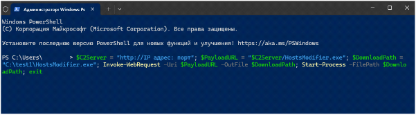 Im beschriebenen Fall wird eine Verbindung zu einem C2-Remote-Host hergestellt. Auf den Host des Nutzers wird die Payload in Form einer ausführbaren Datei heruntergeladen, die die hosts-Datei ändern soll. Der Mechanismus zur Dateiaktivierung wird gestartet. Das Skript wird ausgeführt.
